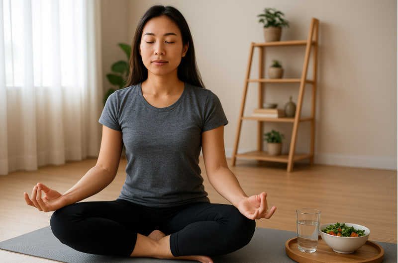 Pagi hari: mulai dengan olahraga ringan, sarapan sehat, lalu afirmasi positif.